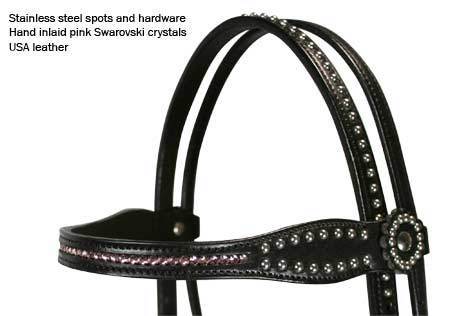- Hand in-laid pink Swarovski crystals on the brow band leather for sharp contrast