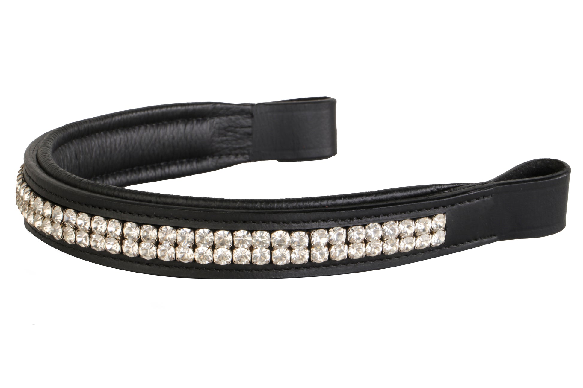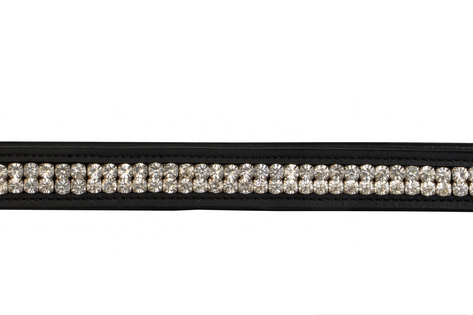 Add a touch of sparkle and sophistication to your bridle with the Double Row Crystal Leather Horse Browband. Expertly handcrafted from premium quality leather, this browband features two rows of shimmering crystals that catch the light beautifully, creating a refined and stylish look for both everyday riding and special occasions.