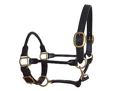 Mini Horse - Rolled Double Adjustable Leather Horse Halter - Black