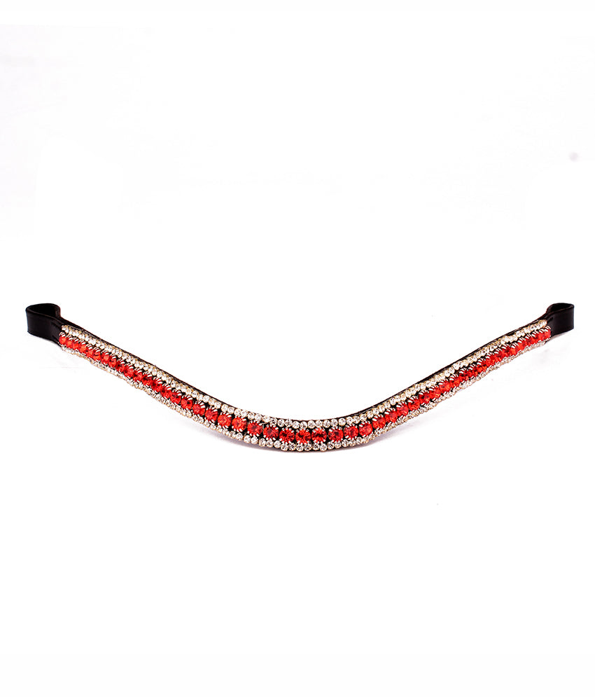 Red Bling Three Row Crystal Leather Horse Browbands / Browband