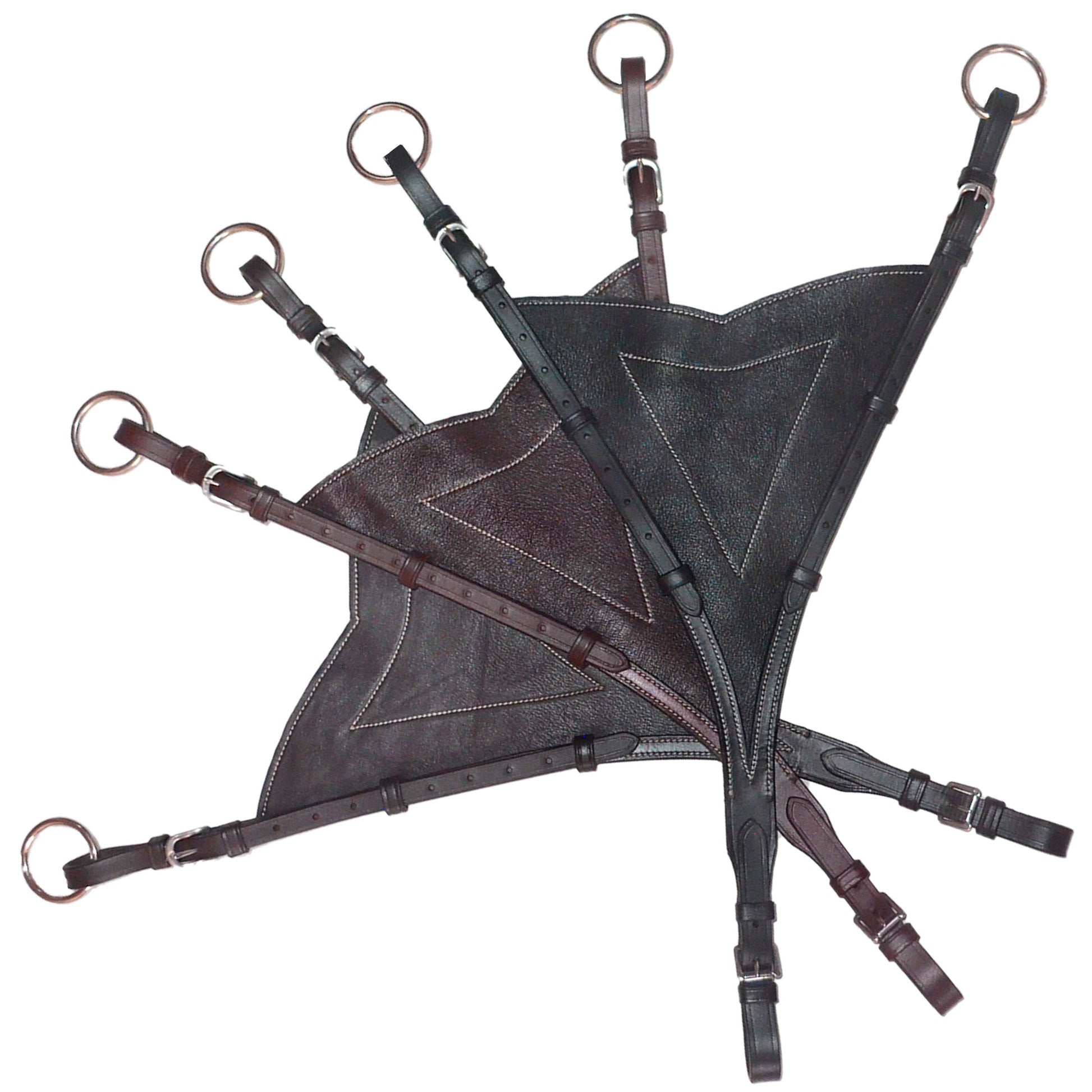 - Bib Design: The soft leather bib keeps the martingale forks together and keeps the horse's mouth from catching straps.