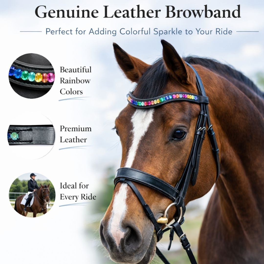 - Rainbow Crystal Design: Multi-color premium rhinestones create a vibrant sparkle effect, adding brilliance, elegance and a show-ready appearance to your horse’s bridle.
