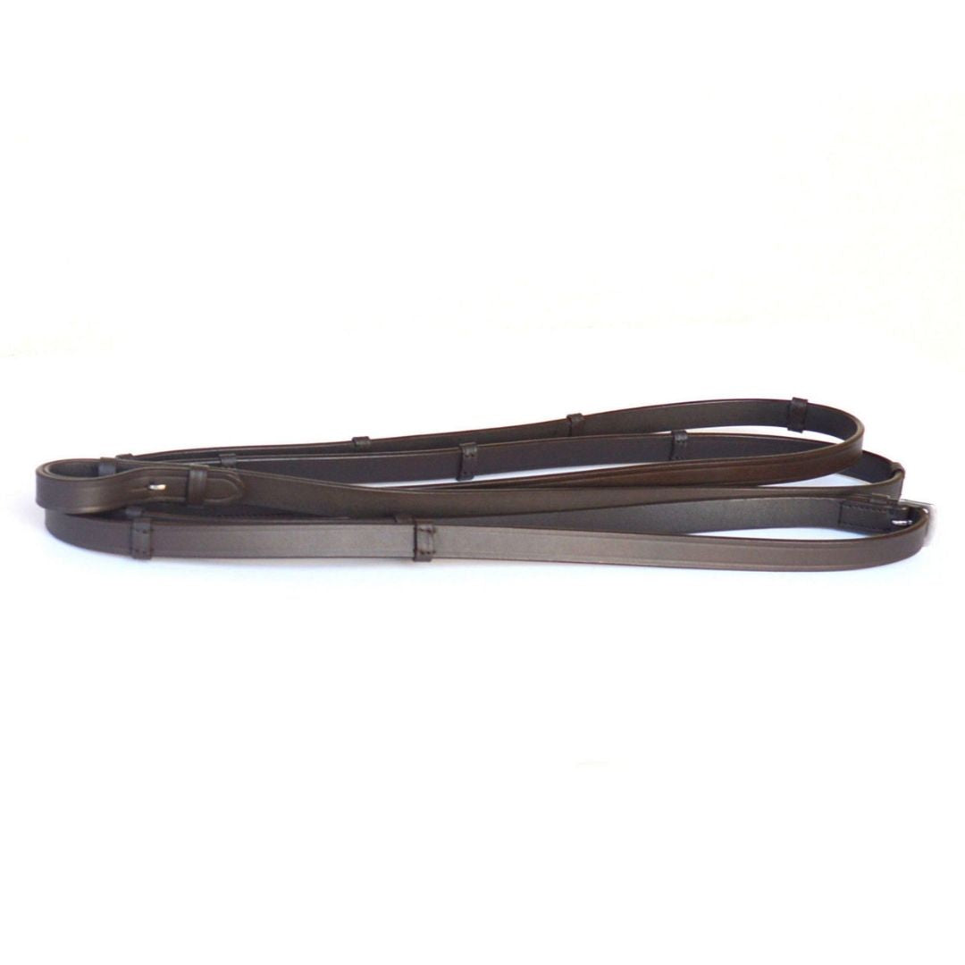 - Multiple Sizes, Colors & Rein Options: Available in Pony, Cob, Full, and Oversize. Colors include Black, Brown, Chestnut, and Havana. Rein options: Rubber Reins, Laced/Braided Reins, Leather with Stoppers, Web Reins, or No Reins.