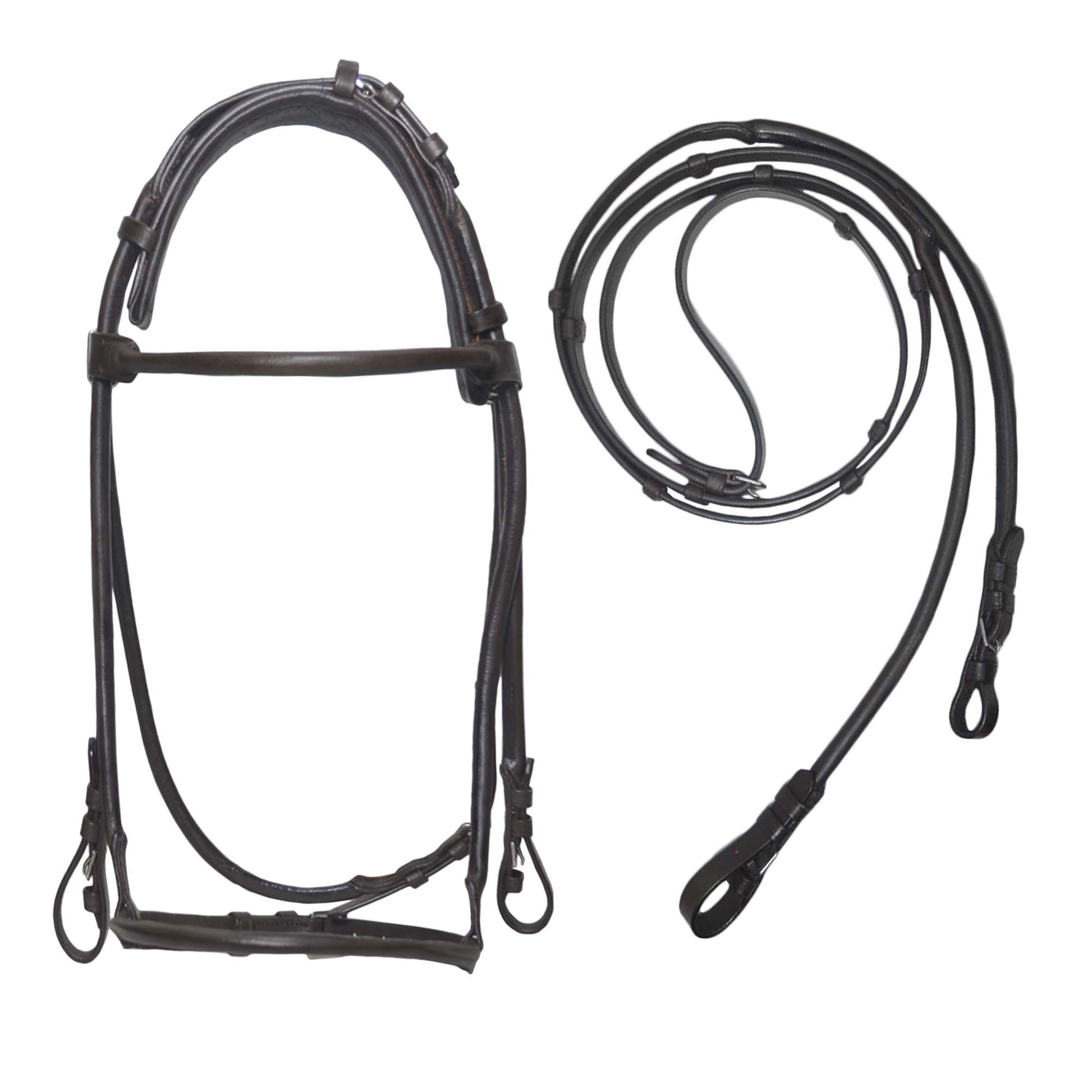 SIE Premium Rolled Leather Horse Bridle Padded Crown Matching Reins Dressage Bridle