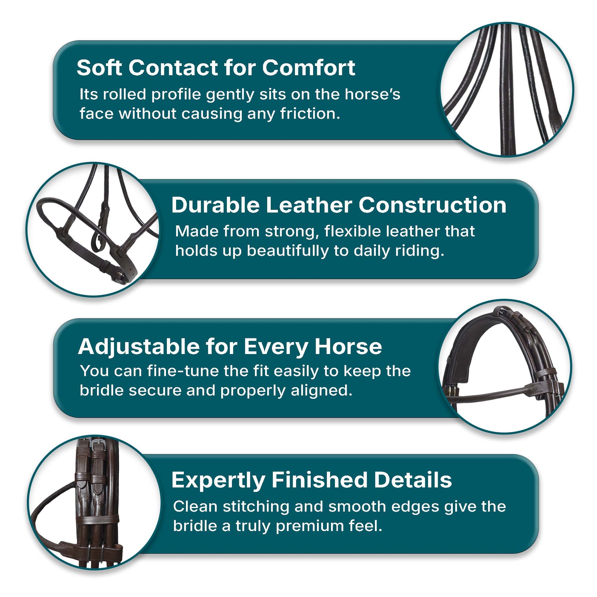 - Comfort-Focused Rolled Leather Design: Rounded rolled leather construction reduces pressure points and prevents rubbing, ensuring maximum comfort for sensitive horses during riding.