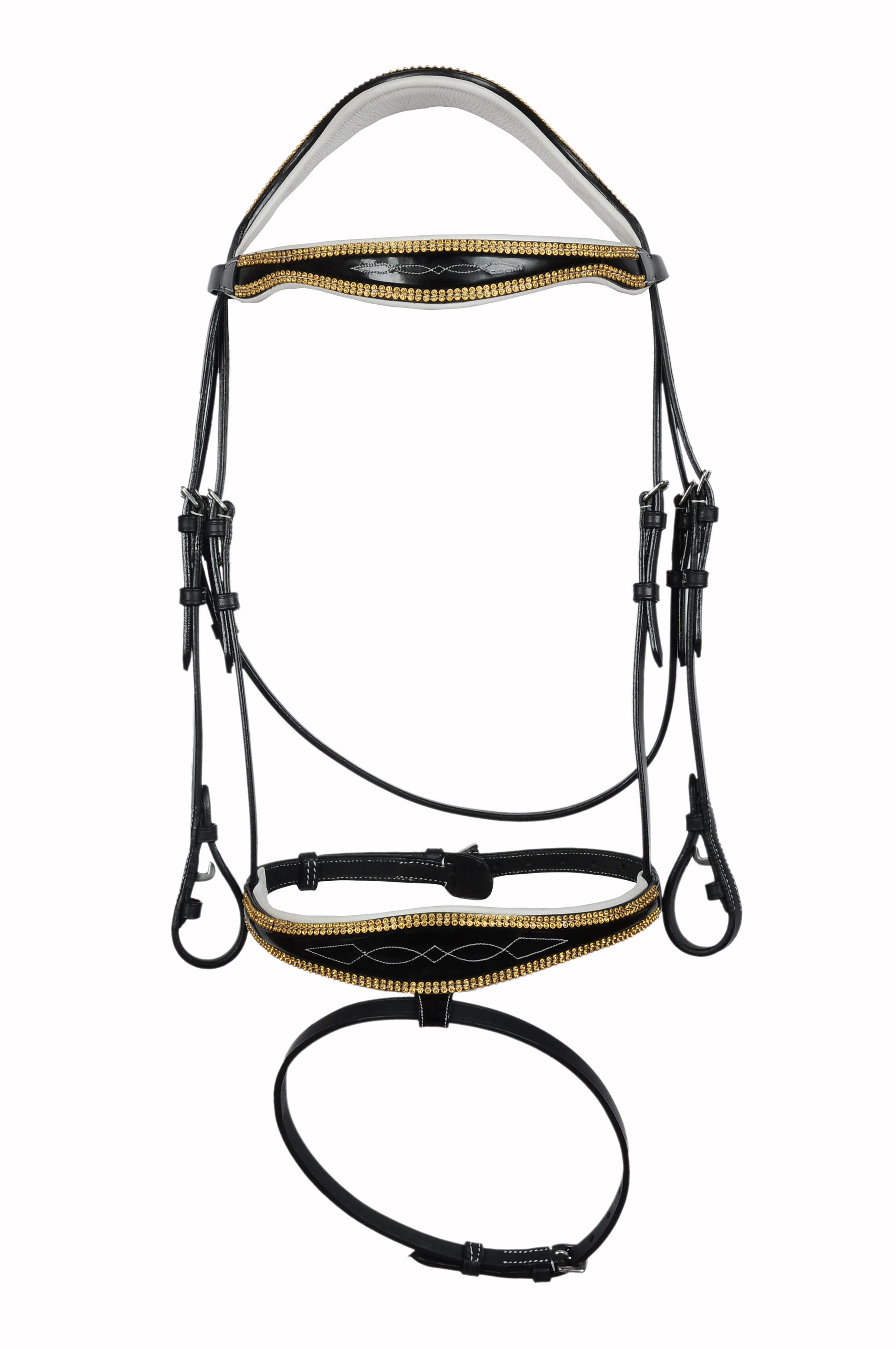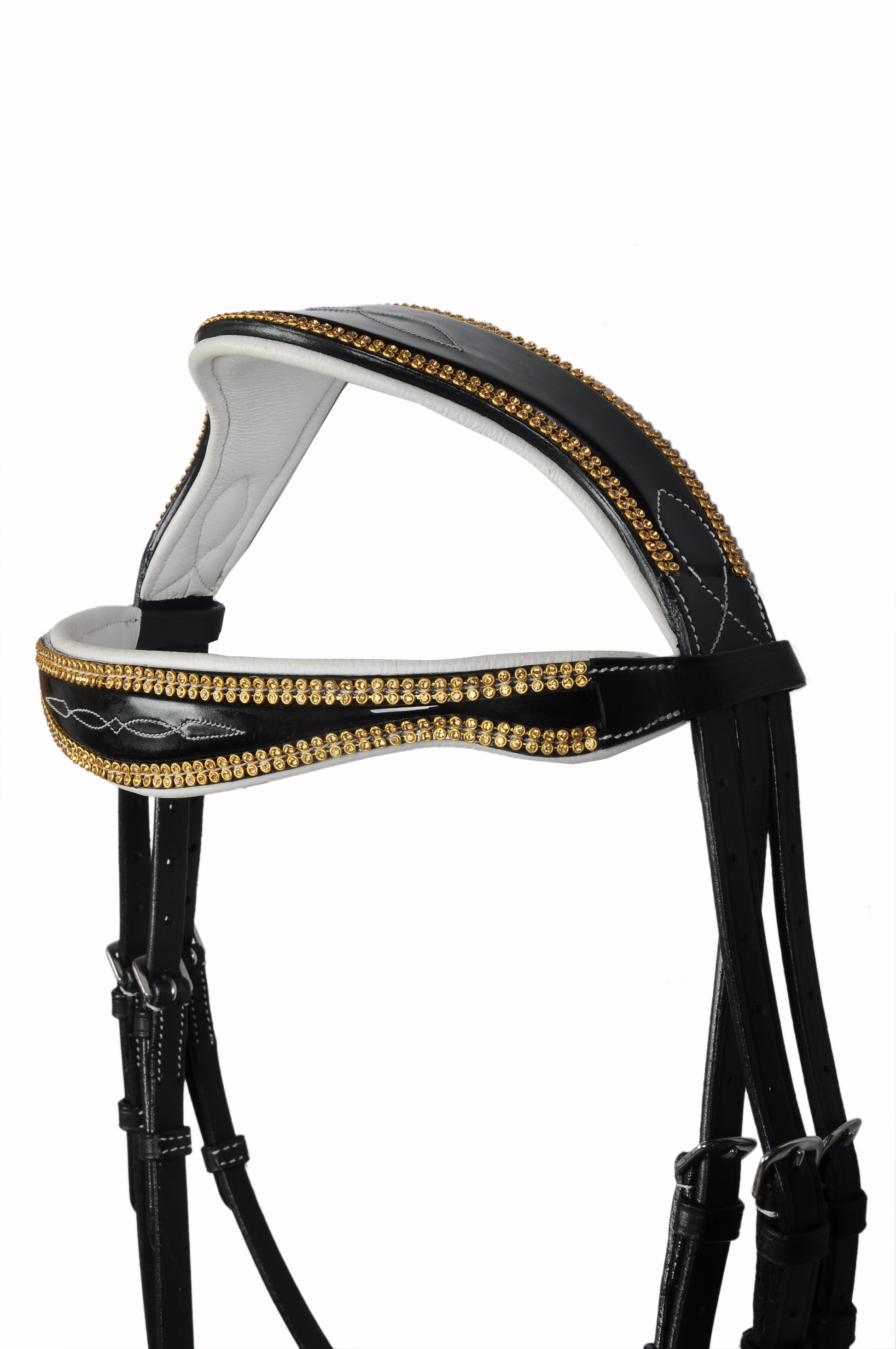 Unique Gold Sequinned Fancy Stitched Leather Bridle